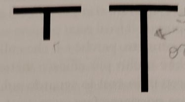 Per spiegare meglio questo legame, uso una regola che chiamo “regola della T”. Dai un’occhiata a queste due T: sembrano diverse, vero? In realtà sono identiche, solo che una è più lunga. Quella lunga sembra anche più stretta, perché è proporzionata meglio.