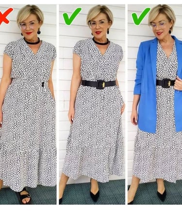 Un altro esempio: se hai le spalle larghe, magari con un vestito con spalline imbottite, otticamente la figura si allarga in alto. Questo può accorciare il collo. In questi casi, è meglio scegliere uno scollo a V, che slancia e riequilibra.